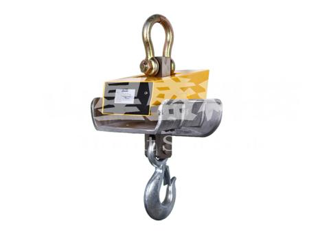 將電子吊秤的吊環掛在起重機的吊鉤上,當電子吊秤的吊鉤上掛上物品后,在秤體內的傳感器受到拉力產生變形,傳感器內的電流發生變化,然后這個變化的電流通過A/D轉換,再通過發射機將無線電信號發出,根據國家無線電管理委員會的規定,電子吊秤一般是用230MHZ和450MHZ發出的,接收機接收到信號以后傳輸給儀表,然后經過儀表的轉換計算,最終顯示出來。